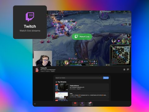 Open Twitch from the "Apps" tab. You can search for channels and games, to start a new stream. We also integrated the live Twitch Chat.